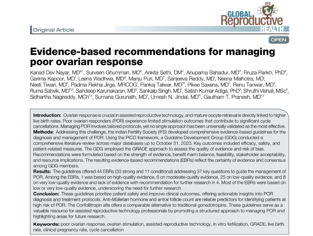 India’s First Evidence-Based Guidelines on Poor Ovarian Response Published in Global Journal